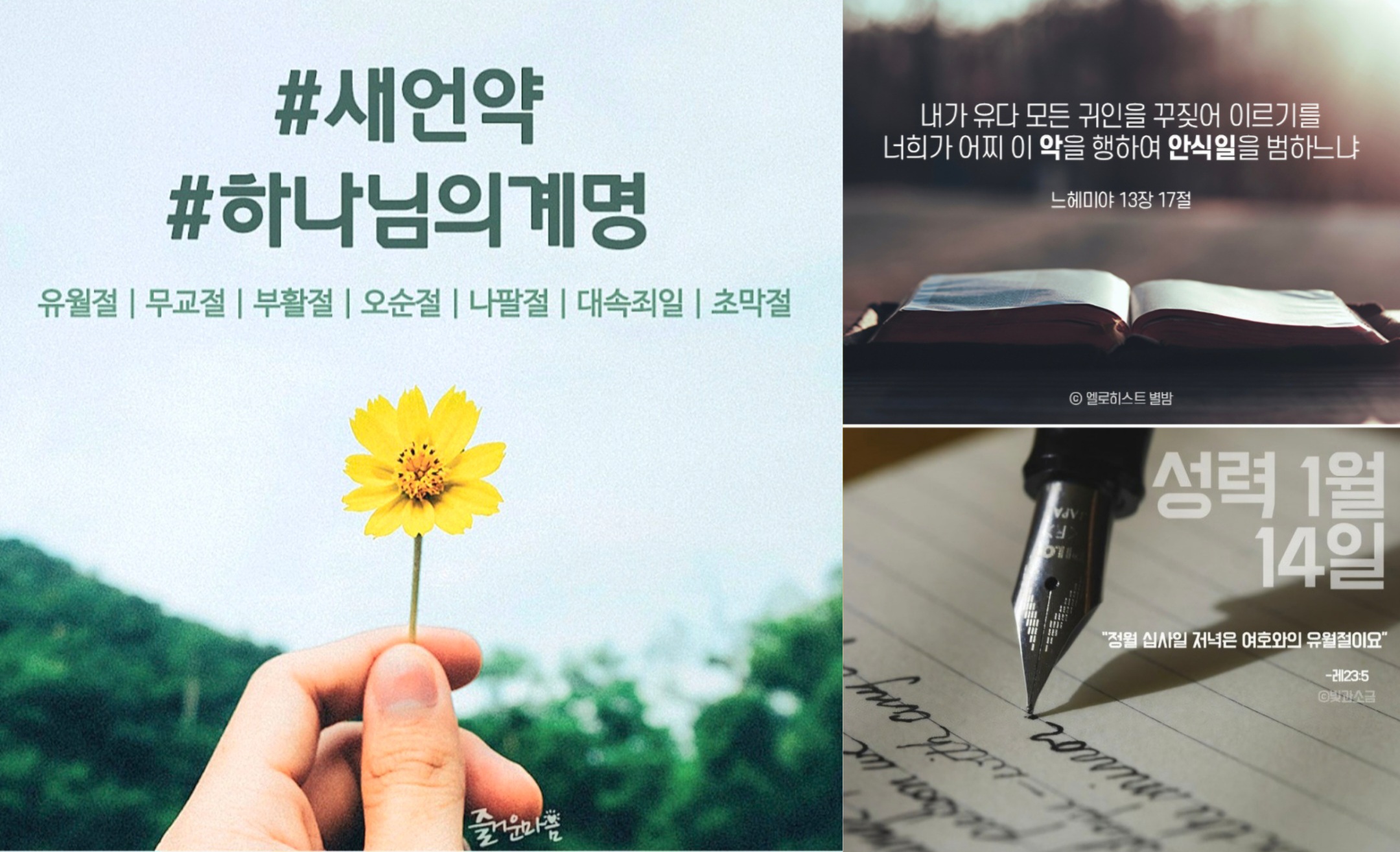 '유월절과 안식일을 지켜야 한다'라고 알려 주면 "구약의 율법이지 폐지되어서 지킬 필요가 없지 않나요?"라고 질문하는 사람들도 있습니다. 하지만 성경은 예수님께서 구약의 율법을 새 언약의 율법으로 완성시켜 주셨지 '폐지하셨다'라는 기록은 없습니다! 그러므로 우리는 새 언약의 율법을 지켜야 되고 가르쳐야 하는 것입니다. 예수님께서 가르침 주시지 않은 그 외의 것은 성경에서 [불법]이라 증거하고 있습니다.